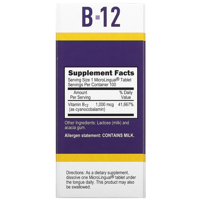 | Vitamin B 12 (as cyanocobalamin) | 1,000 mcg | 41,667% |