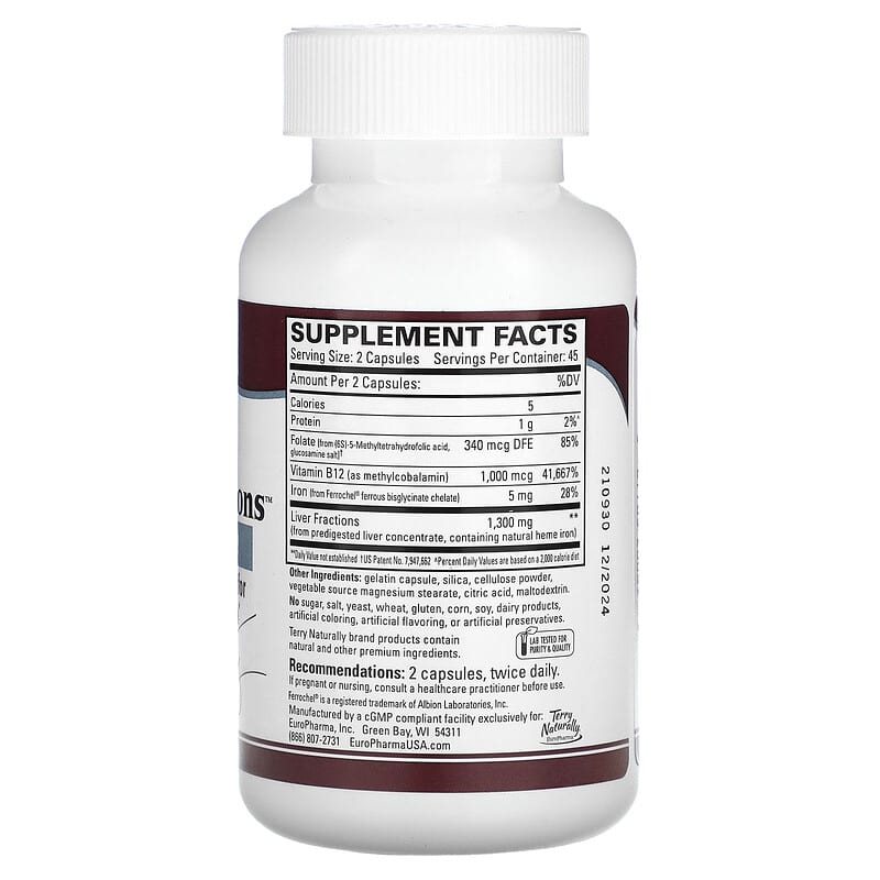 Thực phẩm chức năng Terry Naturally Liver Fractions 90 Capsules chính hãng nhập khẩu từ Mỹ, Mã vạch 367703200893, Quy cách: 0.11 kg, 90 viên