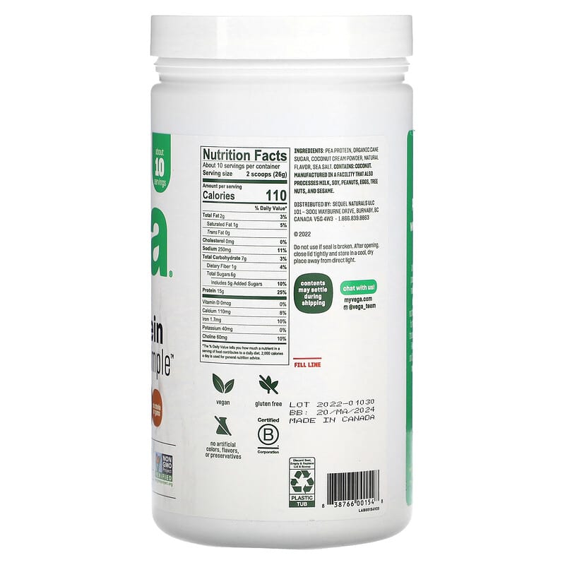 Thực phẩm chức năng Vega Plant-Based Protein Made Simple Caramel Toffee 9.1 oz (258 g) chính hãng nhập khẩu từ Mỹ, Mã vạch 838766001548, Quy cách: 0.34 kg, 9.1 oz