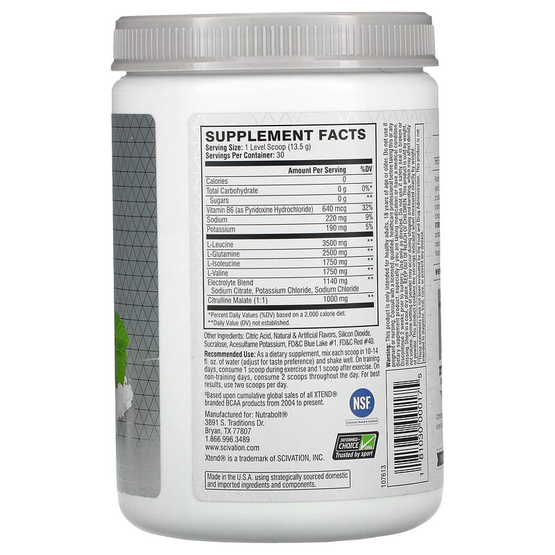 7g BCAA* Muscle Recovery + Electrolytes Naturally & Artificially Flavored 0 Calories* 0 g Carb* 0 g Sugar* 30 Servings Dietary Supplement NSF – Contents Tested & Certified Informed-Choice. Org – Trusted by Sport The World’s #1 BCAA Brand‡The Official Recovery Brand of Champions. Faster recovery is the key to better results. For over 10 years, Xtend has been making the best recovery products in the world. Powered by 7 grams of branched-chain amino acids (BCAAs), which have been clinically shown to support muscle recovery and growth, Xtend Original also contains hydrating electrolytes and additional performance ingredients to help you refuel, repair, and recover. Try all the sugar-free, mouthwatering flavors of Xtend to support your fitness goals. When to Take Xtend for Best Results: Pre Workout – Xtend Energy Intra Workout – Xtend Original Post Workout – Xtend ProCombine with any Xtend brand product every day, even on rest days, to help maximize your recovery. *Per serving. ‡Based upon cumulative global sales of all Xtend branded BCAA products from 2004 to present.